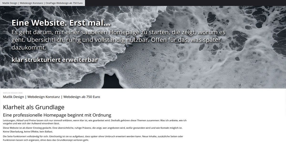 - Startpaket Website: Ein Einstieg, der später wachsen kann.